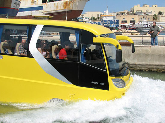 أقدمت شركة صناعة الأتوبيسات المالطية (Amphicoach) على صناعة أول باص ركاب تجارى، يسير على الأرض والماء فى وقت واحد فى العالم.