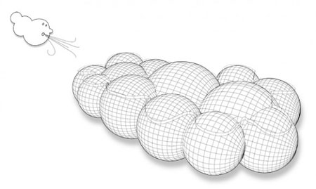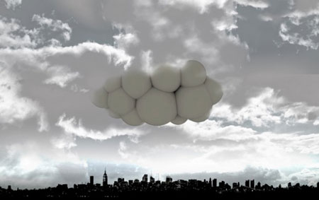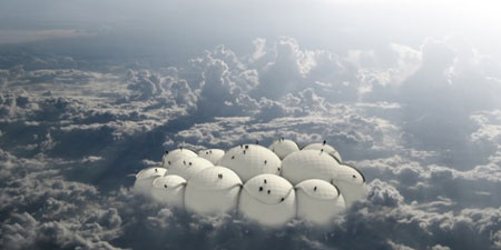 "السحابة العابرة" هي تصميم لمنطاد عملاق يتكون من بالونات عملاقة على شكل كرات متصلة ببعضها البعض، فتبدو وكأنها سحابة عملاقة كما تلاحظون في الصور.