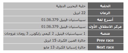 - فشل الألماني سائق ريدبول سيباستيان فيتيل من التأهل الى القسم الثالث والأخير من التجارب التأهيلية للمرة الأولى منذ سباق جائزة البرازيل الكبرى 2009.