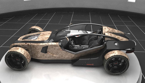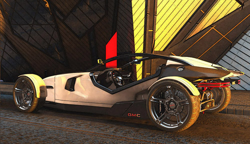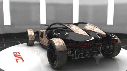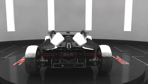 ووفقاً لما ذكره مصمم السيارة ألدو شورمان فإن "GMC Hotrod concept" هي خليط من سيارات كامارو و"Caterham 7" و"Dune Buggy" وستحتوي على محرك أسطواني "V8" ذو سعة كبيرة كمصدر للقوة يوجد في مقدمة السيارة بارز للعيان من خلال الغطاء الشفاف لمحرك السيارة، وسيعمل على نقل الحركة من المحرك للعجلات الخلفية ناقل حركة يدوي بـ6 سرعات.