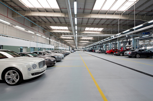 وفي خلفية منطقة الاستقبال تقع الورشة التي توفر أحدث التكنولوجيا والمعدات والأنظمة لعمليات الإصلاح والفحص الدوري. وتعد ورشة بنتلي الجديدة مكاناً واحداً يجمع عدة عمليات، حيث أنها مجهزة لتقديم فحص ما قبل التسليم، الخدمات المختلفة، الإصلاح، قطع الغيار، عمليات الطلاء والصيانة الدورية. وتوجد في الورشة مساحة تكفي لاحتواء 190 مركبة إضافة إلى مواقف للسيارات تتسع لـ250 مركبة للزوار وعملاء بنتلي. كما أنها توفر للفنيين إمكانية إجراء صيانة لـ40 سيارة في وقت واحد.
