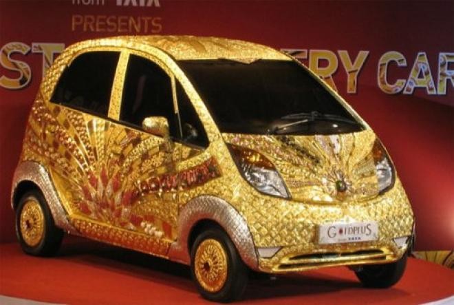 للإثارة كان لابد من الدعاية وهذا كان الهدف من صنع اول سيارة من الذهب فقد تعاونت الشركة المُصنعة مع شركة غولدبلس للمجوهرات، وتم تغطية السيارة بعشرات الكيلوغرامات من الذهب والفضة والمجوهرات الثمينة فتحولت من أرخص سيارة الى الأغلى في العالم، لا تفوتك شاهدها عبر لكن لا تحلم بشرائها لان السيارة تم تغطيتها بـ 80 كيلوغراما من الذهب عيار 22، و15 كلغ من الفضة، و1000 حجر من الاحجار الكريمة كالزمرد واللؤلؤ، والياقوت!!