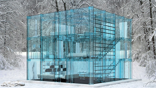 إذا كنت ممن يقدرون الخصوصية فربما يكون هذا هو المنزل الغير المناسب لك. ذكرت ديلي ميل أن انطباعات الفنان والمهندس المعماري كارلو سانتامبرجيو كشفت عن كيفية تصميمه لمنزل بأكمله من الزجاج ما عدا السرير وحرصه على أن يكون أيضاً بمنأى عن أعين الجيران المتطفلين. تقول ديلي ميل أن هذا المنزل الذي يسود اللون الأزرق على زجاجه سيترك من يراه في حالة من الخيال بدأً من الاستحمام والنوم وتناول الطعام. يتوافر هذا المنزل في معرض "showroom" في شارع بورتلاند في لندن وتستخدم هذه الصور في عرض أثاث هذا المنزل الزجاجي الذي أطلق عليه اسم "البساطة".