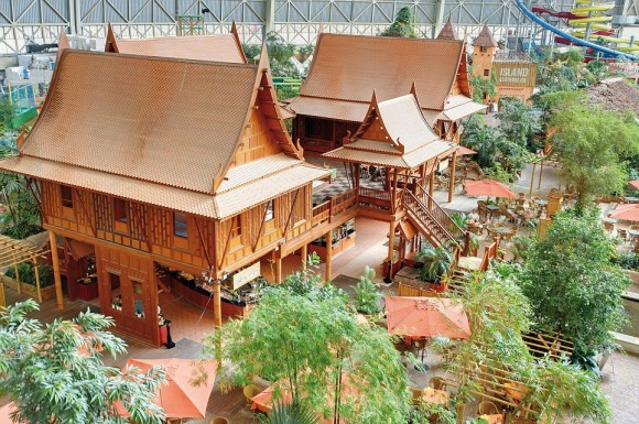 و يتضمن هذه المساحة الضخمة منتجع يضمن غابات إستوائية تحتوي على 50 ألف نبتة متعددة تمتد على مساحة 10 الاف متر مربع ، و أكبر حوض أو بركة سباحة داخلية تتسع نحو 6 الأف شخص أو زائر، مع 400 كرسي شمسي على الشاطئ.