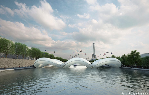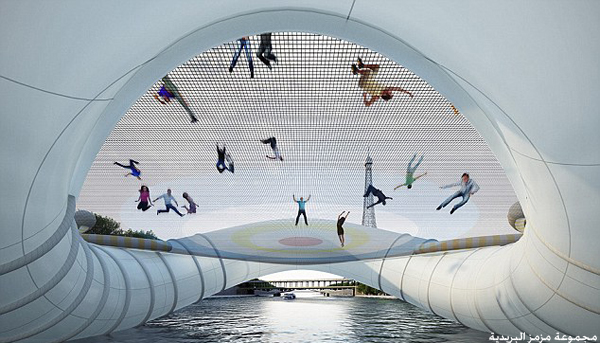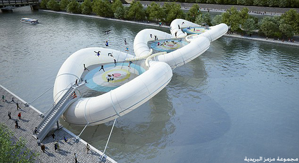 • جسر يُملأ بالهواء يسمح للمارة بالقفز عليه ليصل بين ضفتي نهر السين بـ باريس