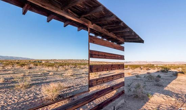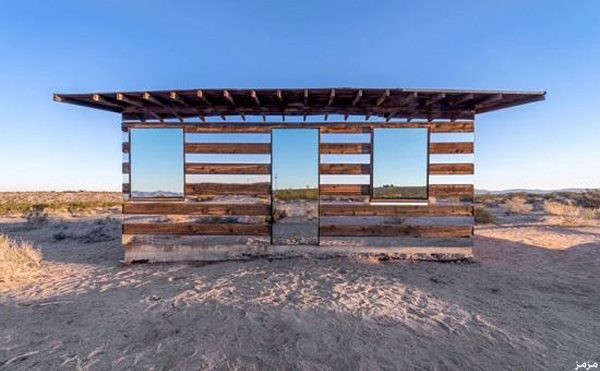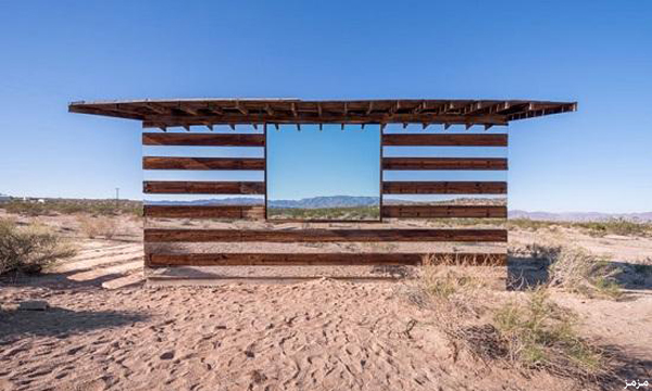 تمكن فنان أمريكي من تحويل كوخ قديم في صحراء كاليفورنيا، إلى أحد روائع الفن الحديث بعد أن أحاطه بالمرايا والعواكس الضوئية من كل جوانبه، بحيث يخيل للناظر إليه بأنه شفاف يمكن النظر إلى المناظر الطبيعية من خلاله دون أن يحجبها.