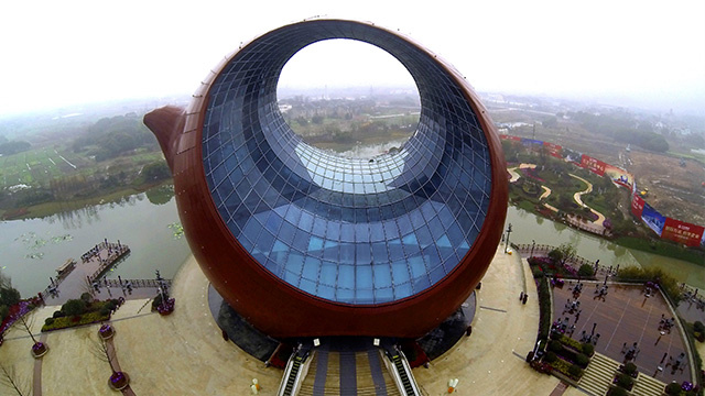 التقطت عدسة الكاميرا مجموعة من الصور لمبنى لا يزال في طور التشييد في الصين وقد تم تصميمه ليكون على شكل إبريق شاي صيني هو الأكبر في البلاد.تم التقاط هذه الصور من سماء مدينة ووشي في مقاطعة جيانغوسو في شرق البلاد. من المقرر أن يتحول "إبريق الشاي" إلى قاعة للعروض الثقافية .