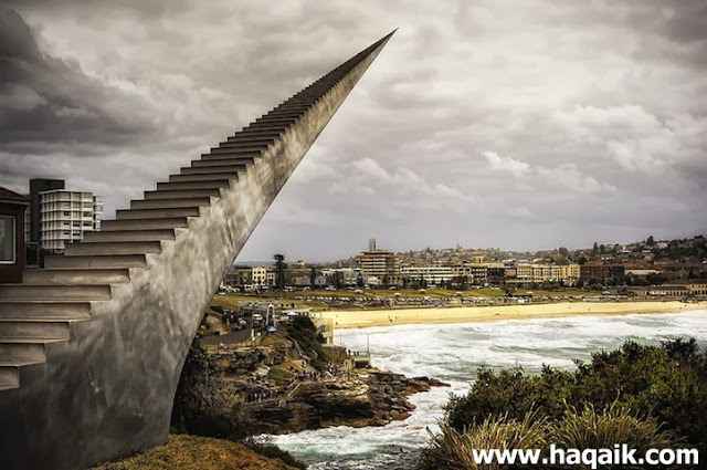 درج لا نهائى للسماء هو تركيب نحتى للفنان ديفيد مكراكين فمن زوايا ستجده للهبوط وزوايا اخري للصعود وكأنه درج لا ينتهى أبدا كان هذا الحدث ضمن الحدث السنوي المعروف بأسم النحت علي شاطئ البحر في بوندي بأستراليا وكان الدرج من أكثر الاشياء الافتة للنظر فقطعة من المعرض تعرض في الهواء الطلق ،ويراه الزوار انه يخترق الغلاف الجوي للارض ولكنه ليس الا خداع بصري فقد وضع في الدرج التأثيرات البصرية المرتبطة بمحاكاة المسافة ، مما عمل علي الشعور بأنه سلم لا نهائي الى السماء ويخترق السحب والافق بلا نهاية