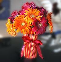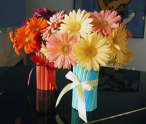 بعد ذلك ضعى الزهور بتناسق وسط الفازه