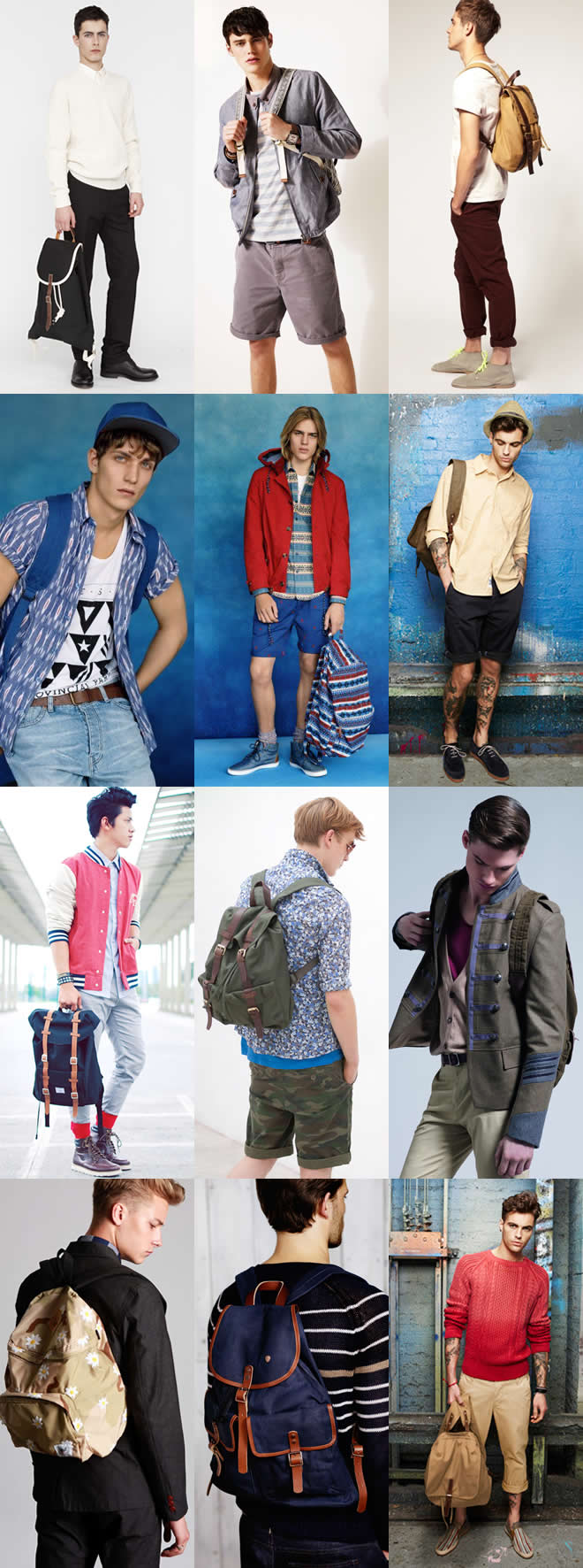 على الرغم من إن هناك العديد من الشباب الذين يفضلون الألوان المحايدة (مثل الأسود والأبيض والرمادي)، إلا أنه في فصل الصيف يُفضل اختيار الألوان البراقة، وكذلك التصميمات ذات الخطوط والنقوش المختلفة، لذا تقدم العديد من خطوط الأزياء الشهيرة مجموعة جديدة من حقائب الظهر التي لا تتمتع بالمظهر الأنيق فحسب، بل تتميز بكونها حقيبة عملية تصلح لأغراض عدة.