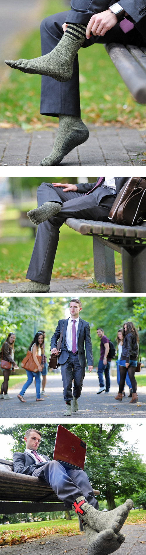 أجل هذا الأمر سيكون ممكناً بعد قيام شركة سويسرية للأقمشة بصناعة جوارب يمكن ارتدائها دون أي حذاء، الجوارب مزودة بمساحة لاستيعاب أصابع القدم (مثل قفازات اليد)، والقائمون على الشركة المصنعة صرحوا بأن هذه الجوارب يمكن الخروج بها دون استخدام أي حذاء ليشعر مرتديها بأنه يسير حافي القدمين، وهي مصنوعة من مادة بولي كلوريد الفينيل التي تمنع تمزقها، كما أنها مصنوعة أيضاً من مواد تستخدم في البدلات الواقية من الرصاص، وتعمل الشركة أيضاً من أجل إنتاج جوارب جديدة تسمح لمستخدمها بالعدو دون أن تتمزق. وتبلغ تكلفة زوج من هذه الجوارب 45 جنيه إسترليني، أي ما يعادل 265 ريالاً سعودياً.