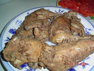 ثم الدجاج و يرش عليه القليل من البهارات