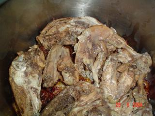 دجااجة مسلوقة و البهارات المستخدمة معروفة هيل و فلفل اسود و بهار حلو و طبعا اهم شي القرفة للمقلوبة و مكعبين ماجي و ملح...