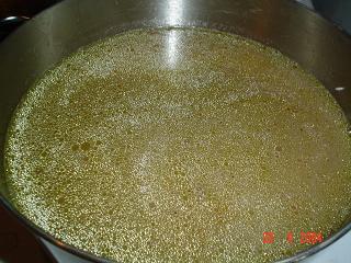 ثم نضيف كمية من مرقة الدجاج اللازمة لنضج الارز