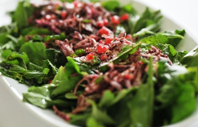 الوصفة الثامنة : سلطة شمندر مع رمان وجرجير