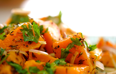 - توضع السلطة في طبق التقديم وتُزين بأوراق الكزبرة الخضراء الطازجة.