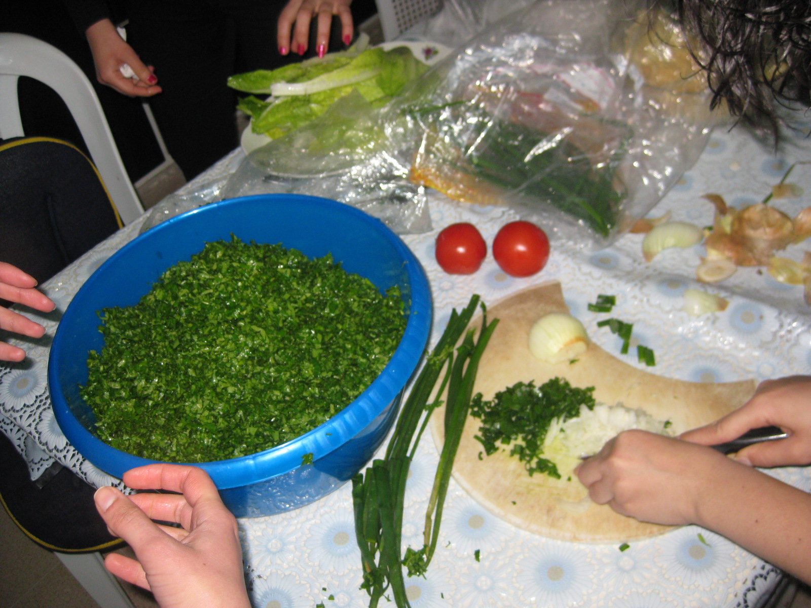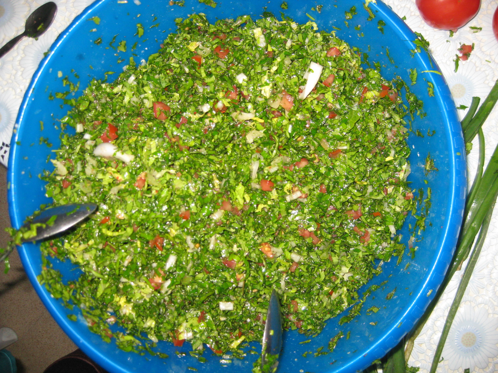وبعدين تتبلوها حسب الرغبة وصحتين وهنا وهدول الصور كنا انا ورفقاتي عامليت تبولة واشتهيتكون معنا ف حبيت حط الصور