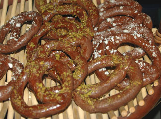 - يُدهن ببياض البيض- المخفوق مع قليل من الماء- و يُرش عليها الفستق المجروش أو السكر الخشن.