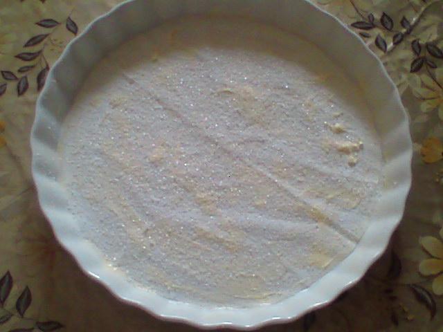 نصففها فوق القالب المجهز مسبقا كما هو مبين في الصورة.