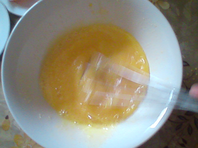 نكسر البيض في اناء.نضيف له السكر و نخلط بالخلاط اليدوي العادي.