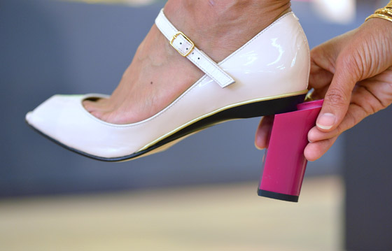 وقد سهلت المصممة العملية على النساء وقالت في عرض أزياء في باريس: "اذا كان لديك مناسبة بعد يوم طويل من العمل وليس لديك الوقت لتعودي الى المنزل وتبدلي الحذاء، يمكنك الان تركيب الكعب العالي بعد الانتهاء من عملك وبكبسة زر على الكعب نفسه وتستطيعين ازالة الكعب العالي بسهولة".