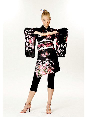 والكيمونو هو عبارة عن عباءة على شكل حرف (T) مخططة يصل طولها إلى الكاحل