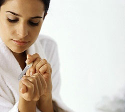 أولا استخدمي حبوب فوارة مثل الأسبرين ، ضعيها في كوب ماءثم انقعي أظافرك فيه خمس دقائق.
