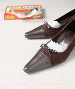 باستخ دام قطعة قماش قطنية أو بفرشاة امسحي الحذاء