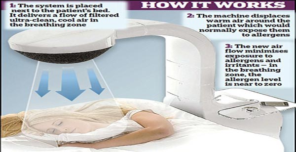 ماري بلندن، في دراسته التجريبية للجهاز بالتطبيق على 282 مريضا بالربو, تتراوح أعمارهم بين 7 إلي 70 عاما, أن الجهاز أثبت فاعليته في تنقية الهواء من مسببات الحساسية بعد وضعه بجوار سرير المريض أثناء نومه, حيث يتكون الجهاز من ذراع طويلة تتدفق منها الهواء المفلتر فوق رأس المريض.