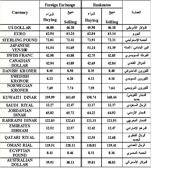 اسعار صرف العملات الاجنبية بالنسبة لليرة السورية