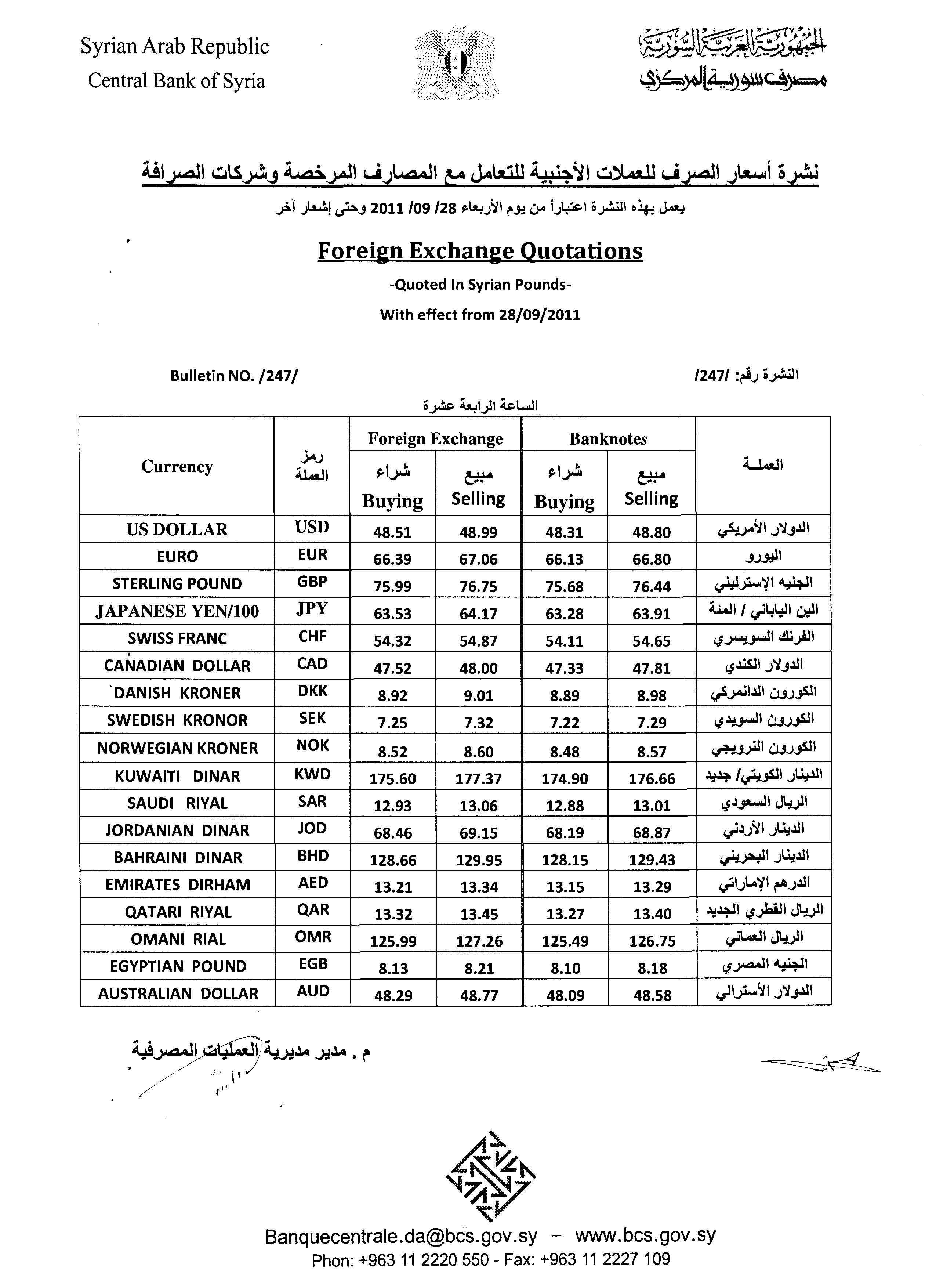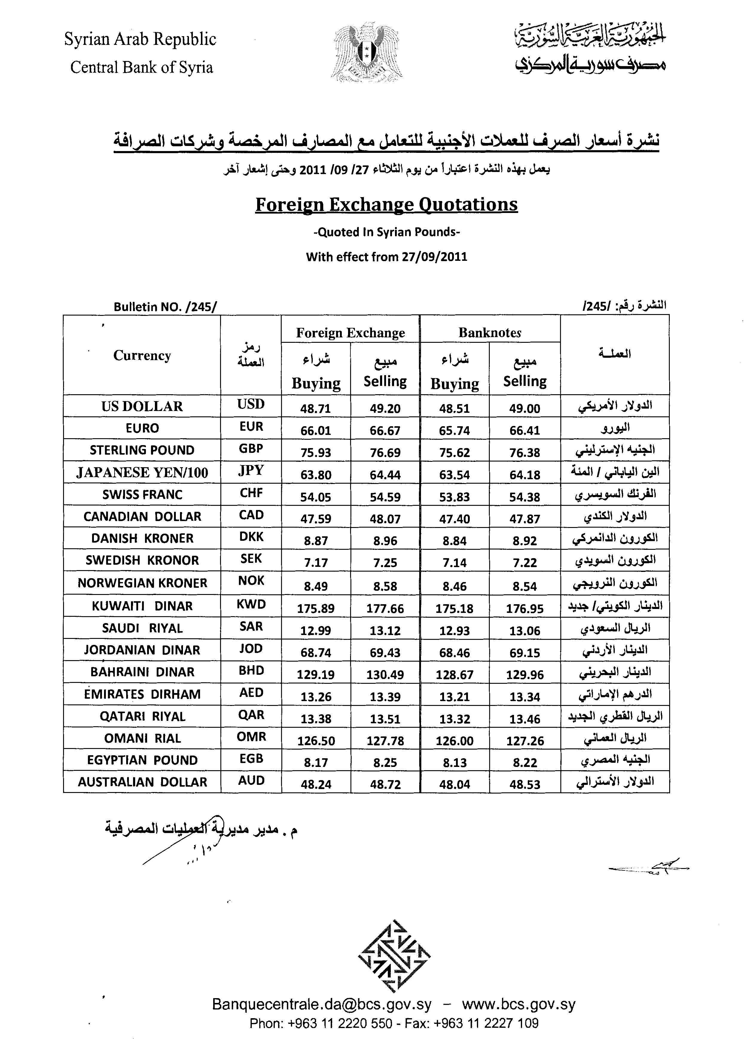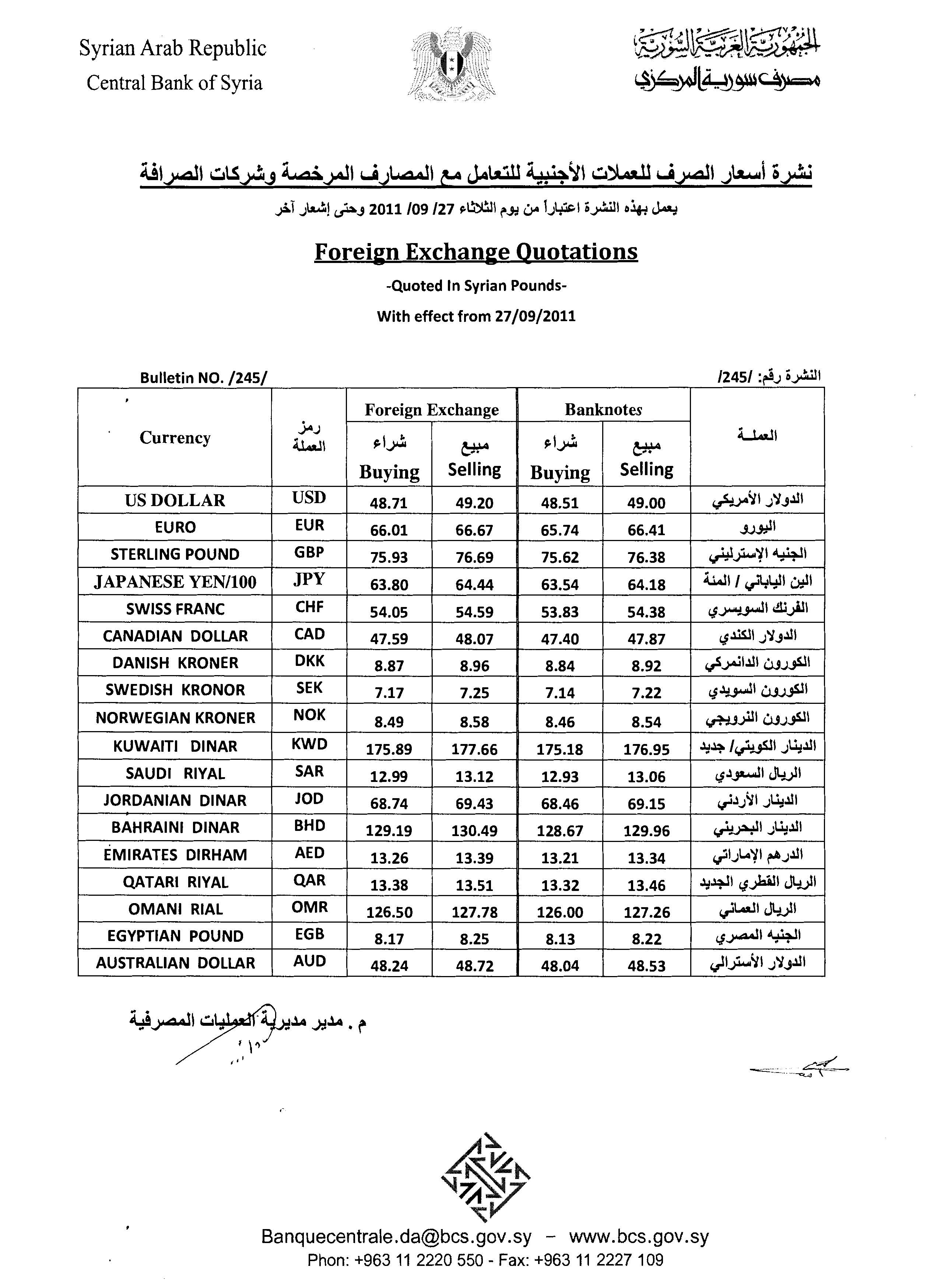 لاء هي نشرة أسعار الصرف الصادرة عن المصرف المركزي
