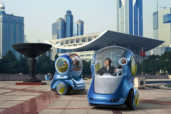 هذا الشكل الغريب هو سيارة EN-V (اختصاراً لـElectric Networked-Vehicle)، وهي سيارة كهربائية صغيرة صديقة للبيئة