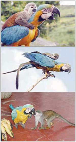 رد: قرد يستخدم ببغاءً في تنقلاته