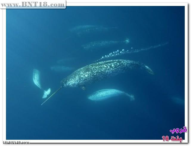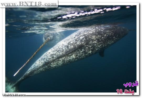 ويتميز ذكوره بعلامة فارقة ومميزة عبارة عن ناب أو سن حلزونى طويل وقوى ويمتد من أيسر فكه العلوى ،
