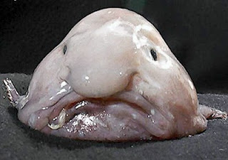 هذه ليست شخصية كرتونية هذا مخلوق بحري يسمى السمكة الفقاعة Blobfish لا يرى كثيرا من قبل البشر و يعيش في الاعماق بالقرب من استراليا و هو موطنه الوحيد تقريبا هناك خوف من انقراضه بسبب اصطياد الصيادون له بالشباك الطويلة ...