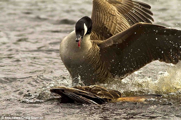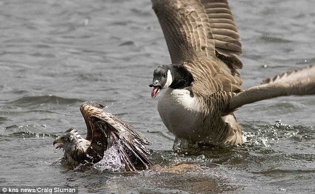 رد: صور مذهلة لصقر جارح يستسلم بعد أن تعرض للضرب والإهانة على يد أوزة تدافع عن صغارها
