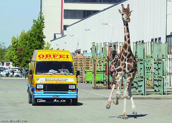 روما أثارت زرافة هربت من سيرك "رونالد أوريفو" المقام في وسط مدينة "إيمولا" الإيطالية فزع الجمهور الحاضر وتسببت في وقف حركة السير في المدينة لموافقة ساعة هروبها مع ساعات الذروة.