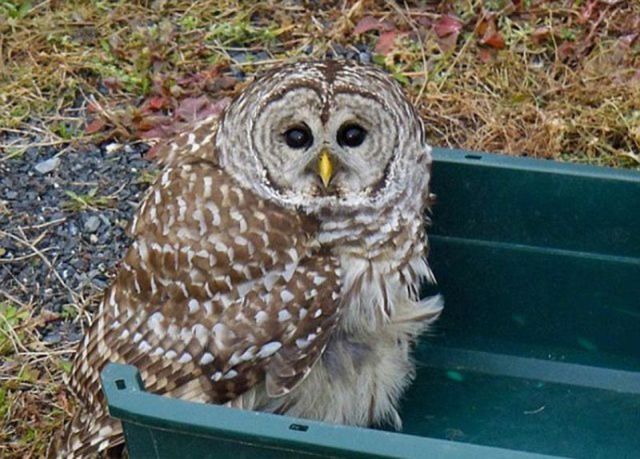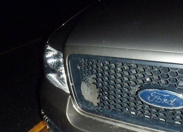 البومة البنية المصقولة اثناء الطيران اصطدمت بسيارة بيك اب فورد في مقاطعة أديسون، ولاية فيرمونت. كان السائق يقود في حوالي 55 ميلا في الساعة (90 كم / ساعة). عادة الطيور تموت بعد هكذا اصطدام من جراء الصدمة. ولكن البومة لم تصب باي اذى سوى صدمة وذهول