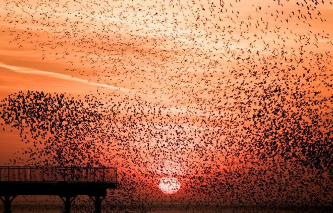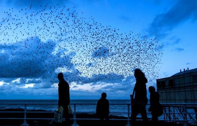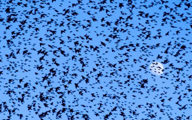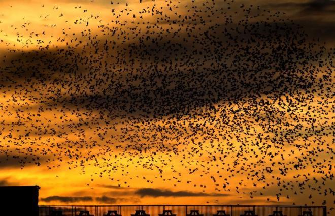 5 الاف زرزور يكونون اشكال رائعة فى السماء