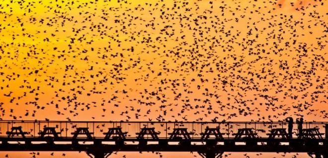 طائر الزرزور هو طائر نادر يعيش اساسا فى اندونيسا و خلال رحلتة للهجرة التقط المصور كيث موريس عدة من الصور والفيديو خلال الغروب لهذا الطائر الذى تجمع فى اعداد مهولة تصل الى 5 الاف طائر مكونة ما يشبة بالسحابة السوداء من كثرة هذه الطيور و نقلا عن الدايلى ميل فان المصور كيث موريس 55 عاما انتقل مع طيور زرزور المهارة لمدة شهرين كاملين و بعد خبرته فى التصوير لمدة 32 استطاع ان يلتقط هذه الصور رائعة الجمال و التى تسجل عادة الهجر لهذا الطير النادر