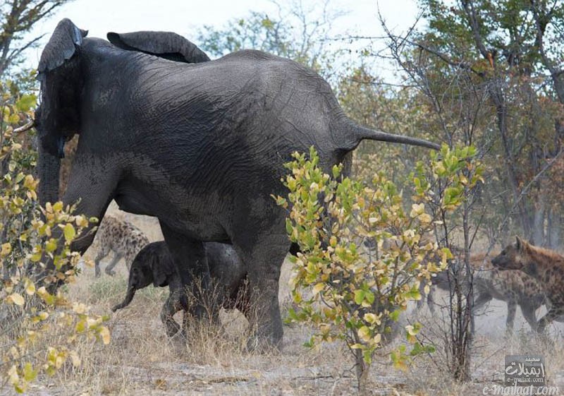 رد: فيل يقاتل الضبع من أجل طفله