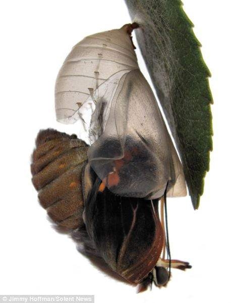 بعد الإنتظار لمدة خمس ساعات، إستطاع المُصور في اللحظات التي ظهر فيها جزء من الفراشة، إلتقاط صور لعملية خروجها بشكل كامل من شرنقتها إلى أن ظهرت واضحة المعالم.