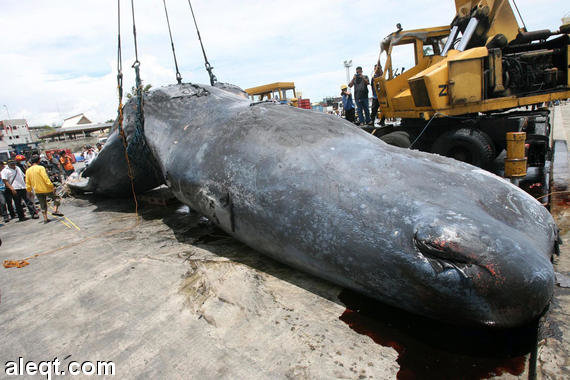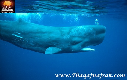 (1) حوت العنبر Sperm Whale : حُوتُ العَنبَرِ هو أحد أشهر أنواع الحيتان في العالم ، وأكبر الحيتان المُسنَّنة (ذوات الأسنان). وهو النوعُ الوحيد الباقي من جنس العنبر وأحد الأنواع الثلاثة المُنتمية إلى فصيلة حيتان العنبر الآخران هما حوت العنبر القزمي وحوت العنبر القزم. يُشتقُّ اسم هذه الحيتان من سائلٍ شمعيّ يُعرف باسم " العنبريَّة " يعتبر أكبر حوت له أسنان معروف حتى الآن حيث يبلغ طول الذكر في بعض الأحيان أكثر من 20 متر فهو ضخم بشكل هائل بحيث يصل وزنه إلى 45 طن . تظل الإناث والأطفال معظم السنة في المياه الاستوائية أو شبه الاستوائية بمراعاة الصغار أما الذكور فيقومون بالهجرة إلى المرتفعات وحيدين أو في جماعات متجهين إلى خط الاستواء للتكاثر يستطيع حوت العنبر أن يرتفع بذيله 5 أمتار بين نقطتين ويمكنهم أن يقطعوا 37 كيلومتر من المحيط في ساعة .و من المعروف أن حوت العنبر يستطيع الغوص إلى عمق 1000 متر في رحلة للبحث عن الحبّار من أجل الطعام ويأكل هذا الحيوان الضخم يوميًا 907 كيلوجرام من الأسماك والحبار .