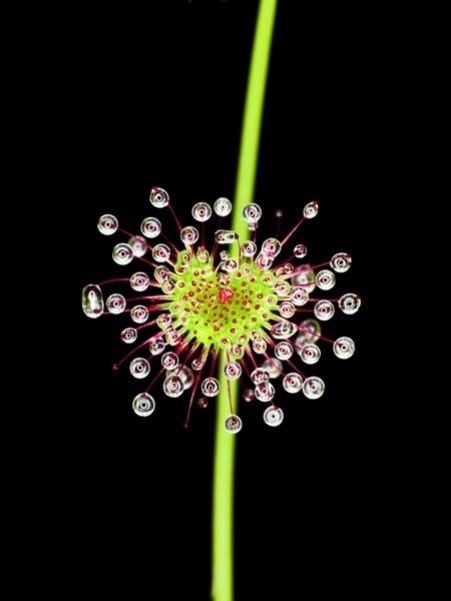 و في نبات الدروسيرا، تغطى أوراقه بزوائد كثيرة تنتهي أطرافها بغدد تفرز مادة لزجة حامضية،