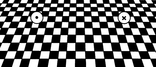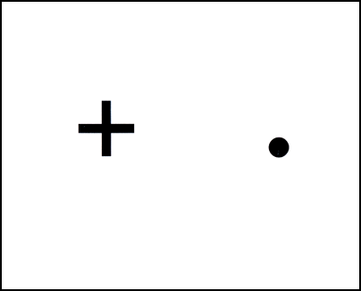 أغلق عينك اليمنى وركز النظر على علامة x في الدائرة التي على اليمين بعد فترة قصيرة ستلاحظ اختفاء النقطة التي في الدائرة على اليسار وظهور المربعات مكانها لتكون وكأنها غير موجودة في الأصل.