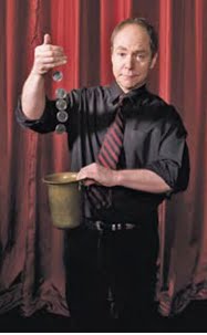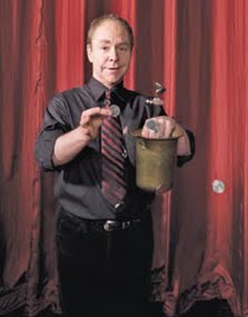 فى البداية يرينا تيلر الدلو الفارغ و يبدأ بجلب العملات المخبئة سلفا داخل يده و لا يراها الجمهور
