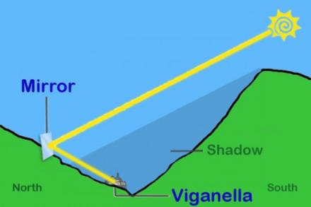 تقع قرية Viganella الصغيرة فى ايطاليا ، وتتميز القرية بطبيعة جغرافية غريبة حيث انها تقع فى وسط وادى عميق وسحيق ويحيط بها الجبال الشاهقة من كل جانب مما يعنى ان الشمس لا تشرق على القرية من منتصف نوفمبر وحتى اوائل فبراير .
