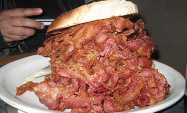 وهي شطيرة برغر ولكن بدلا من استخدام اللحم، يستخدم نحو الرطل من اللحم المقدد الغني بالدهون والمشبع بالسعرات الحرارية العالية.