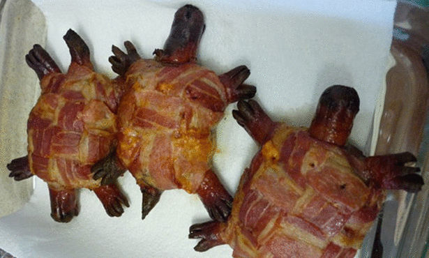 وهي مكونة من قطع اللحم المقدد والبرغر التي شُكلت على هيئة سلاحف صغيرة وممزوجة بجبن الشيدر الذائب والزبد والهوت دوغ..