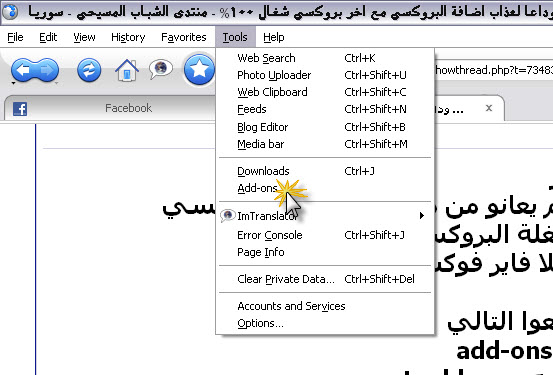 الله يسلمك القصة بعد ما نزلت البرنامج كلو وطبقت كل شي كتبت بالموضوع زبطط القصة بس بعدها بيومين ما عاد اشتغل الفايرفوكس الا بطلوع الانفاس واذا اشتغل ما بيفتح ولا موقع شكرا لأصغائك